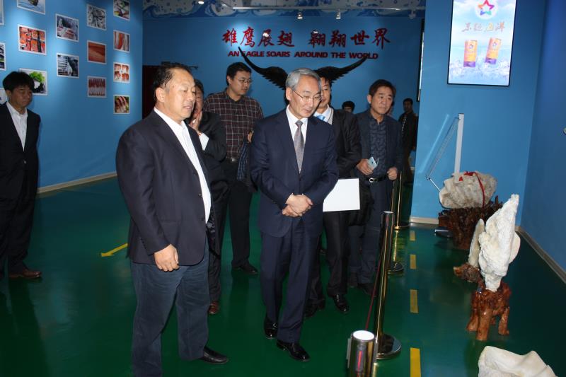 權民鎬一行重點考察了宇王海洋生物館、海洋生物蛋白工廠、宇祥水產食品加工車間等,苗總在陪同考察時向客人介紹公司的經營情況及目標規劃。權民鎬市長對公司的發展、嚴格的管理、良好的衛生、優質的產品等給予高度評價。