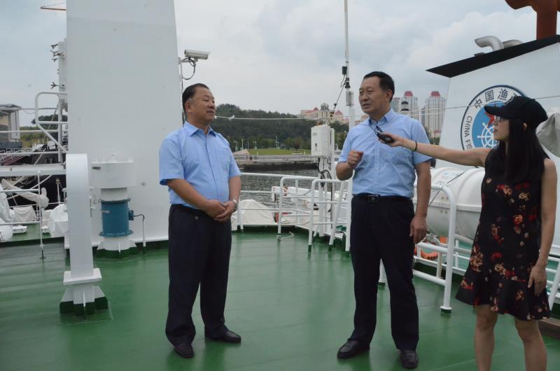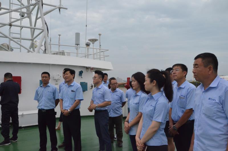 威海宇王集團是集漁、工、貿于一體,擁有產品自營進出口權和外貿流通進出口權的大型綜合企業。主要從事水產食品加工、海水養殖、海洋生物科技、進出口業務等,是威海市水產食品加工出口的骨干企業。宇王集團高管人員依次登上中國海監4067船,參觀考察了船上的駕駛室、輪機部、上層甲板和船員生活區等,并饒有興趣地對船上的有關設備進行咨詢。